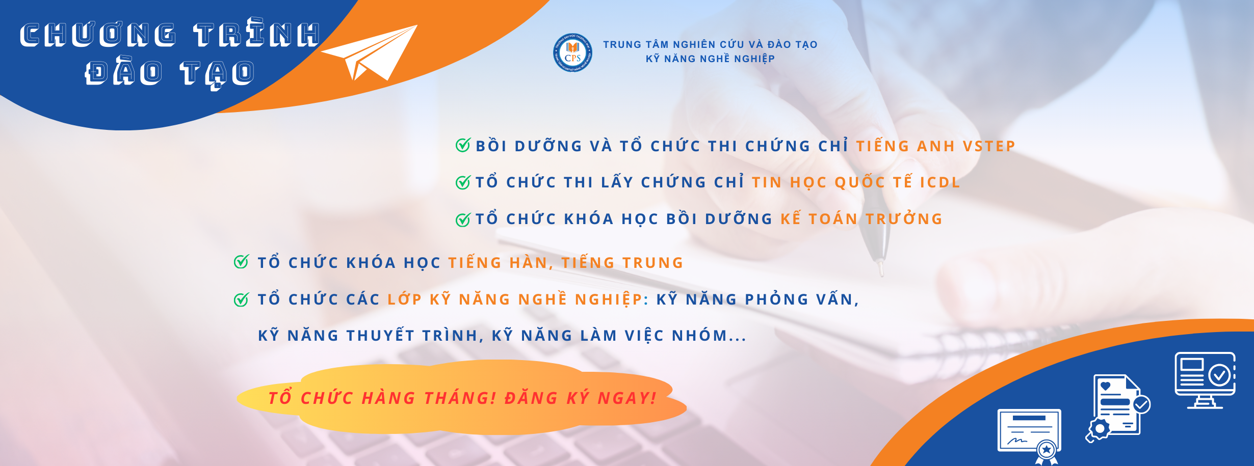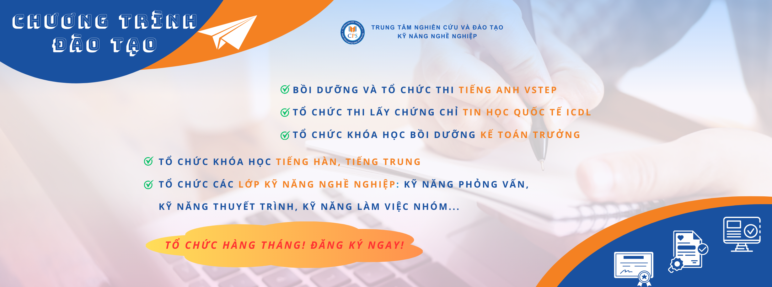 Bạn đang cần chứng chỉ tiếng Anh VSTEP để miễn học phần, xét tốt nghiệp, xin việc hoặc thi công chức? Đừng bỏ lỡ cơ hội tham gia các khóa ôn luyện chất lượng sẽ khai giảng trong tháng này của Trung tâm Nghiên cứu & Đào tạo kỹ năng nghề nghiệp - Trường Đại học Thương mại (TMU)!